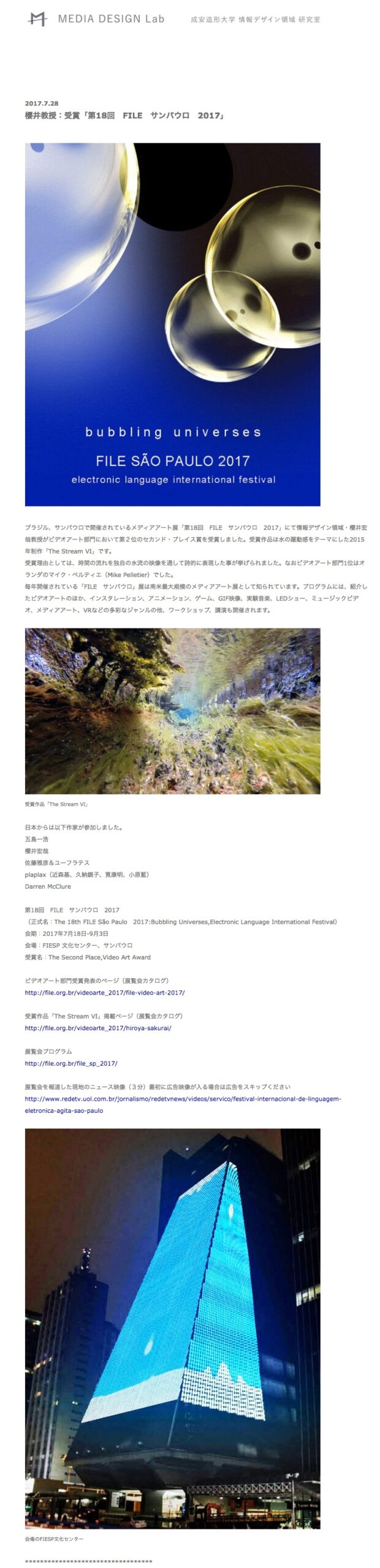 FILE SÃO PAULO 2017 – Media Design Lab NomeFILE SÃO PAULO 2017 - Media Design LabAno (s) / Edição (ões)2017EventoFILE SÃO PAULO 2017DescriçãoFILE SÃO PAULO 2017 Media Design Lab file-sao-paulo-2017-clipping-media-design-lab DivulgaçãoImprensa | Imprensa > Online Evento: ["63520"]Educacional: []Obra Artística: []Participantes: [] Veja também: FILE SÃO PAULO 2017 FILE SÃO PAULO 2017 – Convite Postal Voltar para a lista Anterior Próximo
