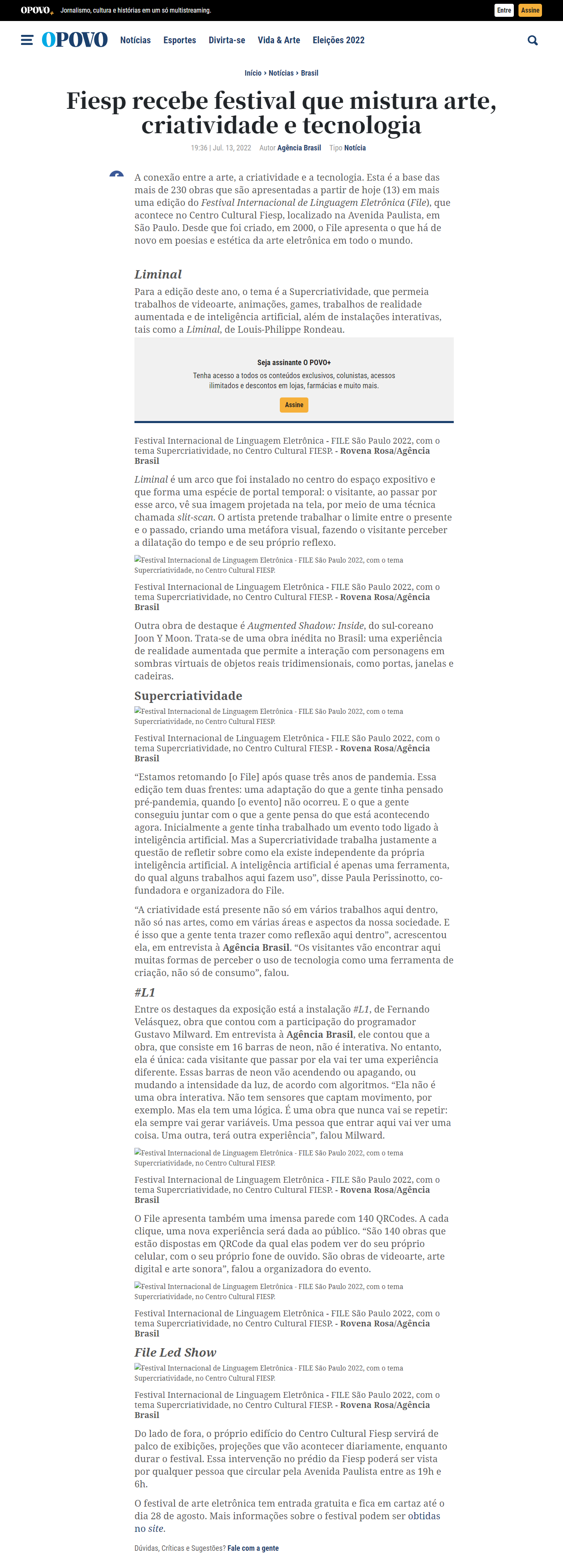 FILE SÃO PAULO 2022 – SUPERCRIATIVIDADE – O Povo NomeFILE SÃO PAULO 2022 - SUPERCRIATIVIDADE - O PovoAno (s) / Edição (ões)2022EventoFILE SÃO PAULO 2022DescriçãoFILE SÃO PAULO 2022 - SUPERCRIATIVIDADE O Povo 13/07/2022 FILE SÃO PAULO 2022 - SUPERCRIATIVIDADE - O Povo file-sao-paulo-2022-supercriatividade-o-povo-imprensa Link ClippingO Povo Evento: ["115675"]Educacional: []Obra Artística: []Participantes: [] Veja também: FILE SÃO PAULO 2022 FILE SÃO PAULO 2022 – SUPERCRIATIVIDADE – Paulista Flat Voltar para a lista Anterior Próximo