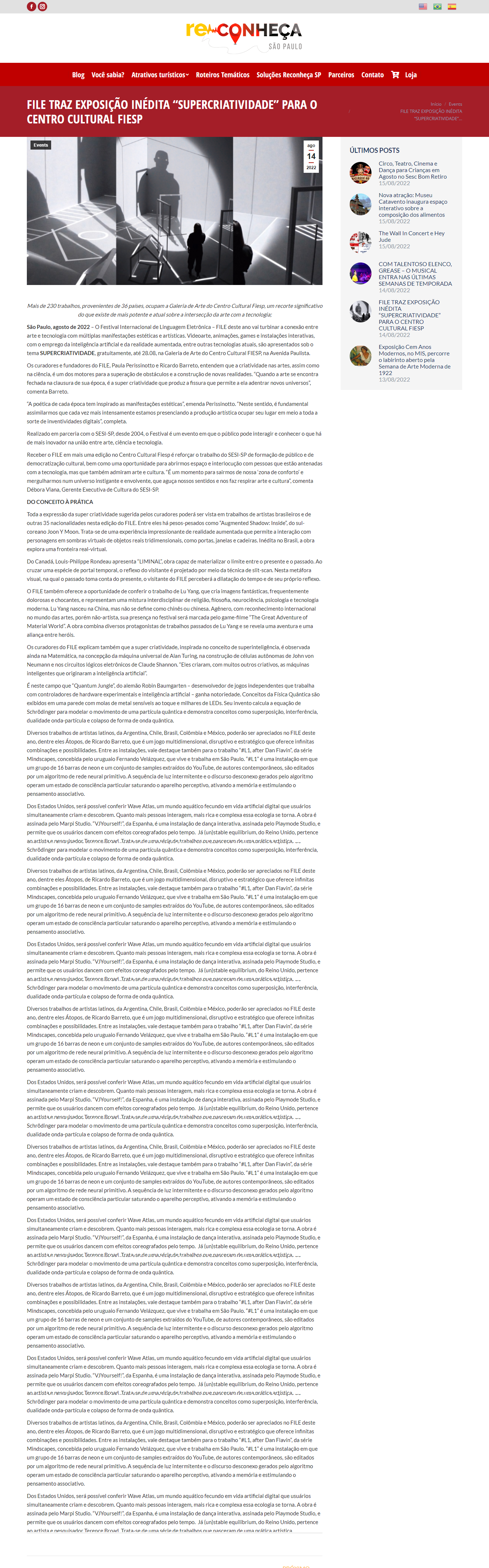 FILE SÃO PAULO 2022 – SUPERCRIATIVIDADE – Reconheça São Paulo NomeFILE SÃO PAULO 2022 - SUPERCRIATIVIDADE - Reconheça São PauloAno (s) / Edição (ões)2022EventoFILE SÃO PAULO 2022DescriçãoFILE SÃO PAULO 2022 - SUPERCRIATIVIDADE Reconheça São Paulo 14/08/2022 FILE SÃO PAULO 2022 - SUPERCRIATIVIDADE - Reconheça São Paulo file-sao-paulo-2022-supercriatividade-reconheça-sao-paulo-imprensa Link ClippingReconheça São Paulo Evento: ["115675"]Educacional: []Obra Artística: []Participantes: [] Veja também: FILE SÃO PAULO 2022 FILE SÃO PAULO 2022 – SUPERCRIATIVIDADE – Paulista Flat Voltar para a lista Anterior Próximo
