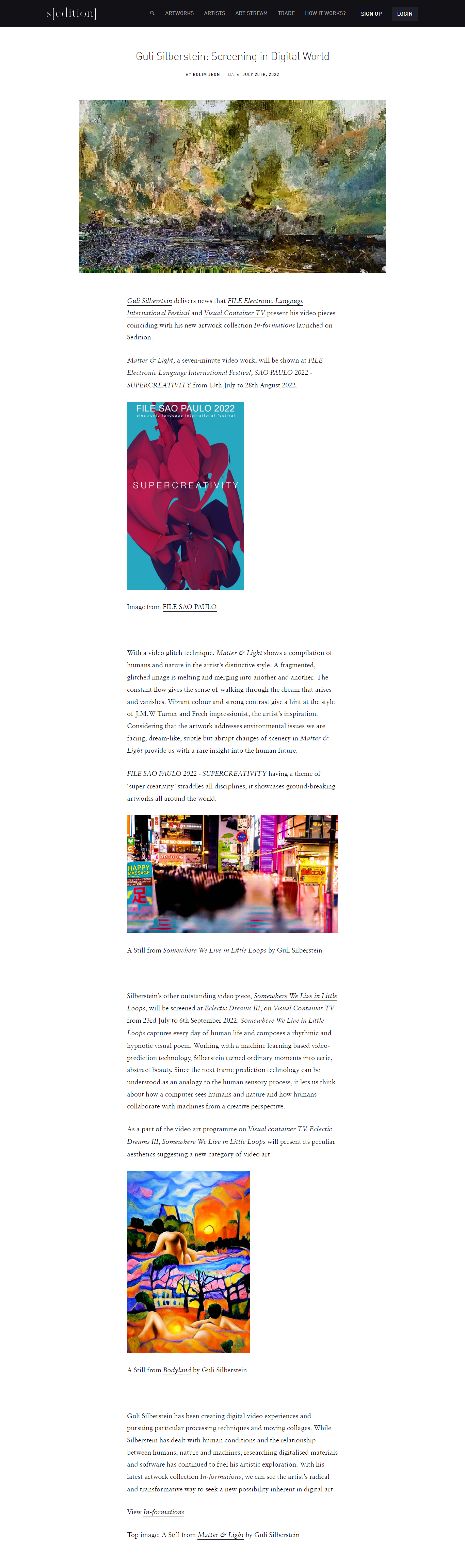 FILE SÃO PAULO 2022 – SUPERCRIATIVIDADE – Sedition NomeFILE SÃO PAULO 2022 - SUPERCRIATIVIDADE - SeditionAno (s) / Edição (ões)2022EventoFILE SÃO PAULO 2022DescriçãoFILE SÃO PAULO 2022 - SUPERCRIATIVIDADE Sedition 20/07/2022 FILE SÃO PAULO 2022 - SUPERCRIATIVIDADE - Sedition file-sao-paulo-2022-supercriatividade-seditionart-imprensa Link ClippingSedition Evento: ["115675"]Educacional: []Obra Artística: []Participantes: [] Veja também: FILE SÃO PAULO 2022 FILE SÃO PAULO 2022 – SUPERCRIATIVIDADE – Paulista Flat Voltar para a lista Anterior Próximo