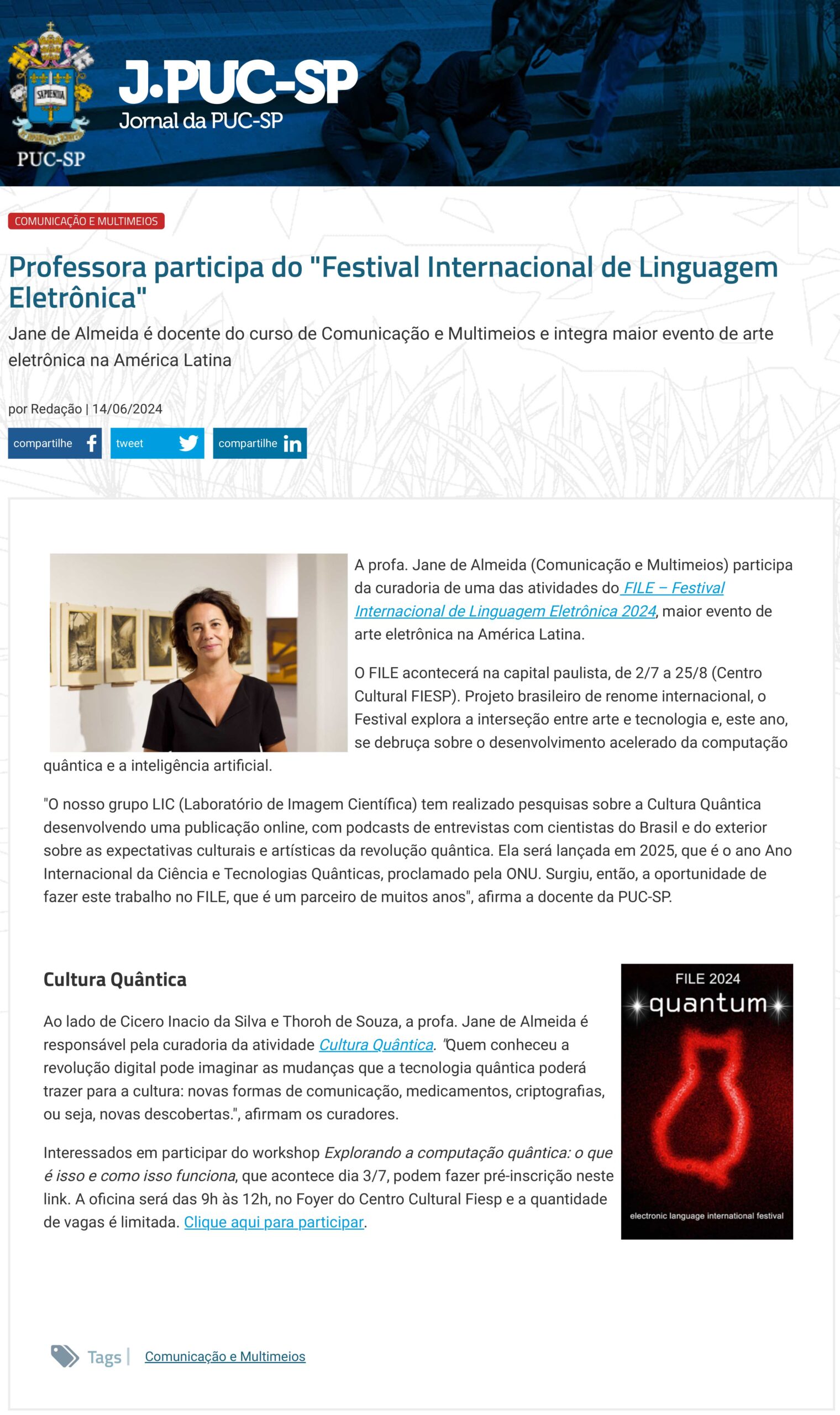 FILE SÃO PAULO 2024 – Jornal da PUC-SP NomeFILE SÃO PAULO 2024 - Jornal da PUC-SPAno (s) / Edição (ões)2024EventoFILE SÃO PAULO 2024DescriçãoFILE SÃO PAULO 2024 Jornal da PUC-SP FILE SÃO PAULO 2024 - Jornal da PUC-SP file-sao-paulo-2024-jornal-da-puc-sp-clipping Link ClippingJornal da PUC-SPDivulgaçãoImprensa > Online > Blog | Clipping > Blog | Clipping | Divulgação de exposição em sites online | Imprensa | Imprensa > Online Evento: ["403266"]Educacional: []Obra Artística: []Participantes: [] Veja também: FILE SÃO PAULO 2024 FILE SÃO PAULO 2024 – CGN Voltar para a lista Anterior Próximo