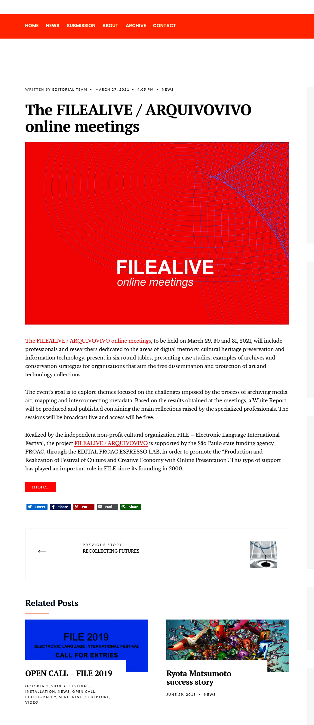 FILEALIVE / ARQUIVOVIVO – 2021 | Art Reveal Magazine NomeFILEALIVE / ARQUIVOVIVO – 2021 | Art Reveal MagazineAno (s) / Edição (ões)2021EventoFILE ALIVE / ARQUIVOVIVODescriçãoThe FILEALIVE / ARQUIVOVIVO online meetings Art Reveal Magazine MARCH 27, 2021 FILEALIVE / ARQUIVOVIVO – 2021 The FILEALIVE / ARQUIVOVIVO online meetings - Art Reveal Magazine - MARCH 27, 2021 art_reveal_magazine_filealive_arquivovivo_2021 Link ClippingArt Reveal magazineDivulgaçãoClipping | Imprensa > Revista > Online | Clipping > Revista Evento: ["26462"]Educacional: []Obra Artística: []Participantes: [] Veja também: FILE ALIVE / ARQUIVOVIVO FILEALIVE / ARQUIVOVIVO – 2021 | SISEM-SP Voltar para a lista Anterior Próximo