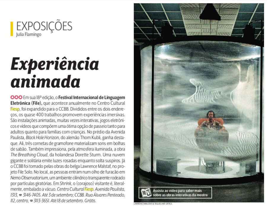 FILE SOLO 2017- Veja São Paulo NomeFILE SOLO 2017- Veja São PauloAno (s) / Edição (ões)2017EventoFILE SOLO 2017DescriçãoExperiência animada - Revista Veja São Paulo 31/07/2017 FILE SOLO 2017 Experiência animada - Revista Veja São Paulo - 31/07/2017 - FILE SOLO 2017 Revista-veja-sao-paulo-FILE-Festival-SP-2017-FILE-SOLO-2017 DivulgaçãoClipping | Imprensa > Revista > Clipping Impresso | Clipping > Revista Evento: ["39900"]Educacional: []Obra Artística: []Participantes: [] Veja também: FILE SOLO 2017 FILE SOLO 2017 – Áudio Guias Voltar para a lista Anterior Próximo