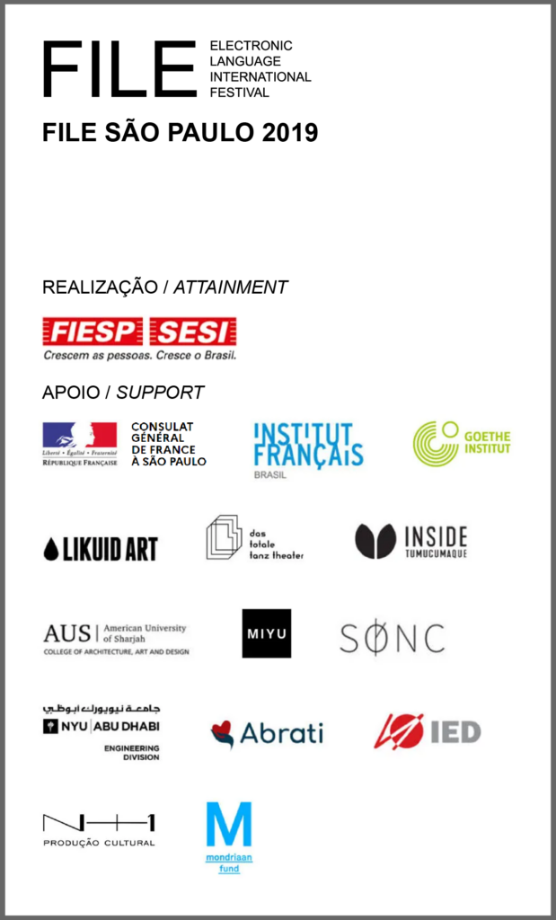 O FILE – Festival Internacional de Linguagem Eletrônica – completa 20 anos em 2019. Mostrar o que existe de inovador na arte e tecnologia é a marca principal do festival. A qualidade e o compromisso em oferecer ao público brasileiro acesso ao que está sendo produzido na ponta da arte eletrônica tem sido a missão do FILE nesses 20 anos de história.