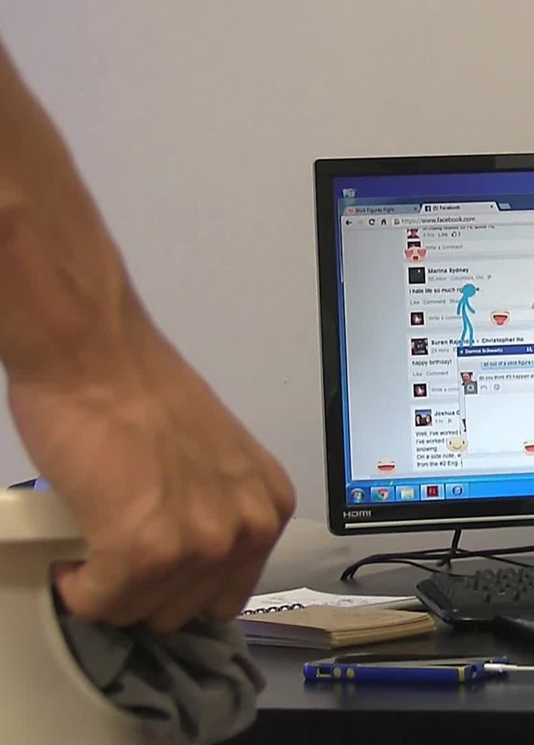 A luta entre um homem de palitinho e seu criador, um animador de computador. A figura de palitinho, resistindo a seu algoz, ataca sua vida social ao hackear sua conta no Facebook, viajando para dentro de seu iPhone via cabo USB e desenhando suas próprias animações para desmantelar a interface de animação.