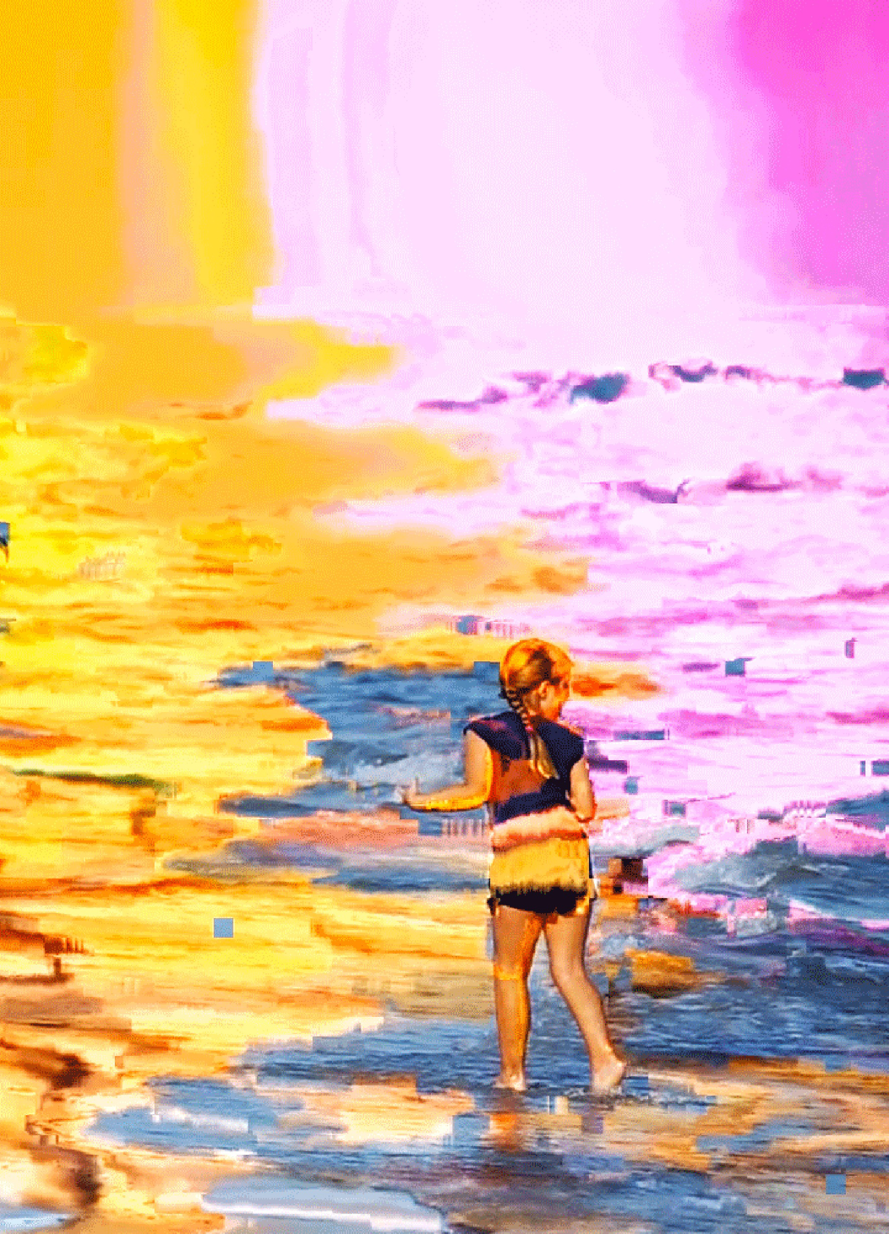 “Apocalypse Beach” é uma série de GIFs em forma de um micro-documentário retratando a praia americana e os breves momentos de seus visitantes. Essas vinhetas em loop foram gravadas em 2016 em várias praias da Flórida e da Nova Inglaterra. Depois, os vídeos foram convertidos para o codec Xvid e corrompidos usando um processo de datamosh no Avidemux.
