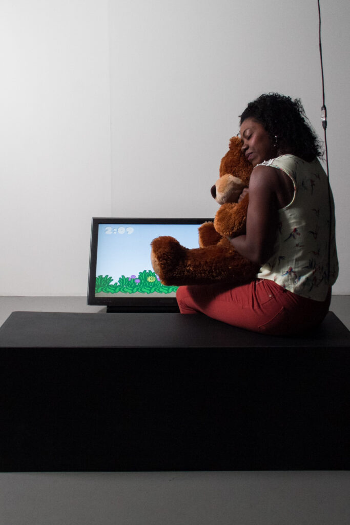 “Big Huggin’” é um jogo de afeto desenvolvido para o uso com um urso de pelúcia customizado como controle. Os jogadores concluem o jogo dando vários abraços oportunos em um urso de pelúcia de 76 cm. Um gesto artístico e um sistema lúdico, “Big Huggin'” é um jogo divertido com um só controle – um urso de pelúcia movido à afeição. O controlador permite vários níveis de abraço, portanto, o jogador deve usar o corpo inteiro de forma suave para abraçar (não apertar) o urso.