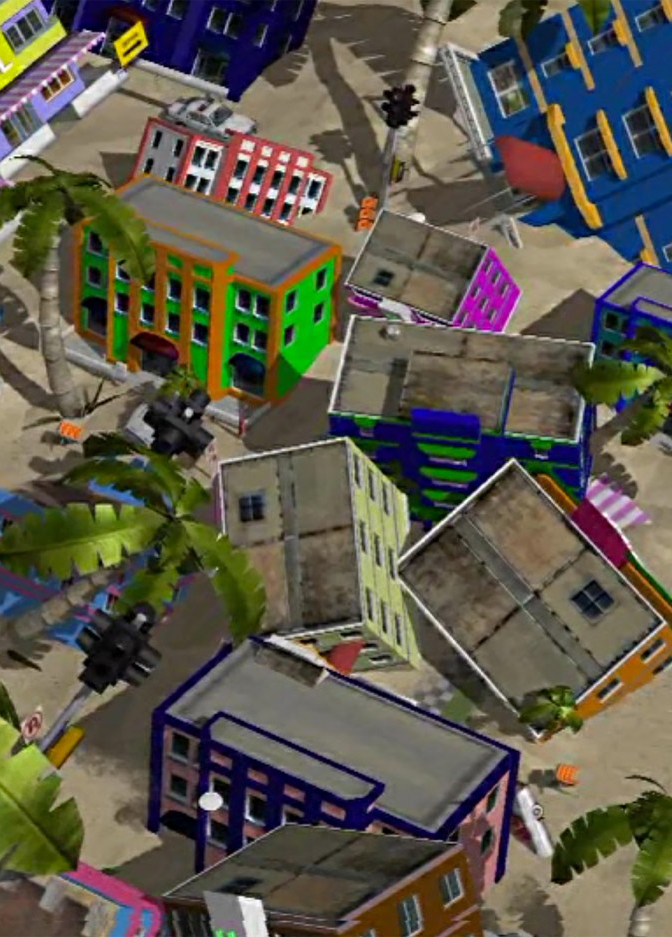 “City Forest and the Sandy End” é um vídeo experimental criado com uma engine de jogo. A obra explora as implicações das mudanças climáticas e como nossos mundos costeiros, nossas cidades turísticas, podem um dia virar areia. Essa obra explora a natureza tênue e frágil de ambientes urbanos através da movimentada costa leste da Austrália.