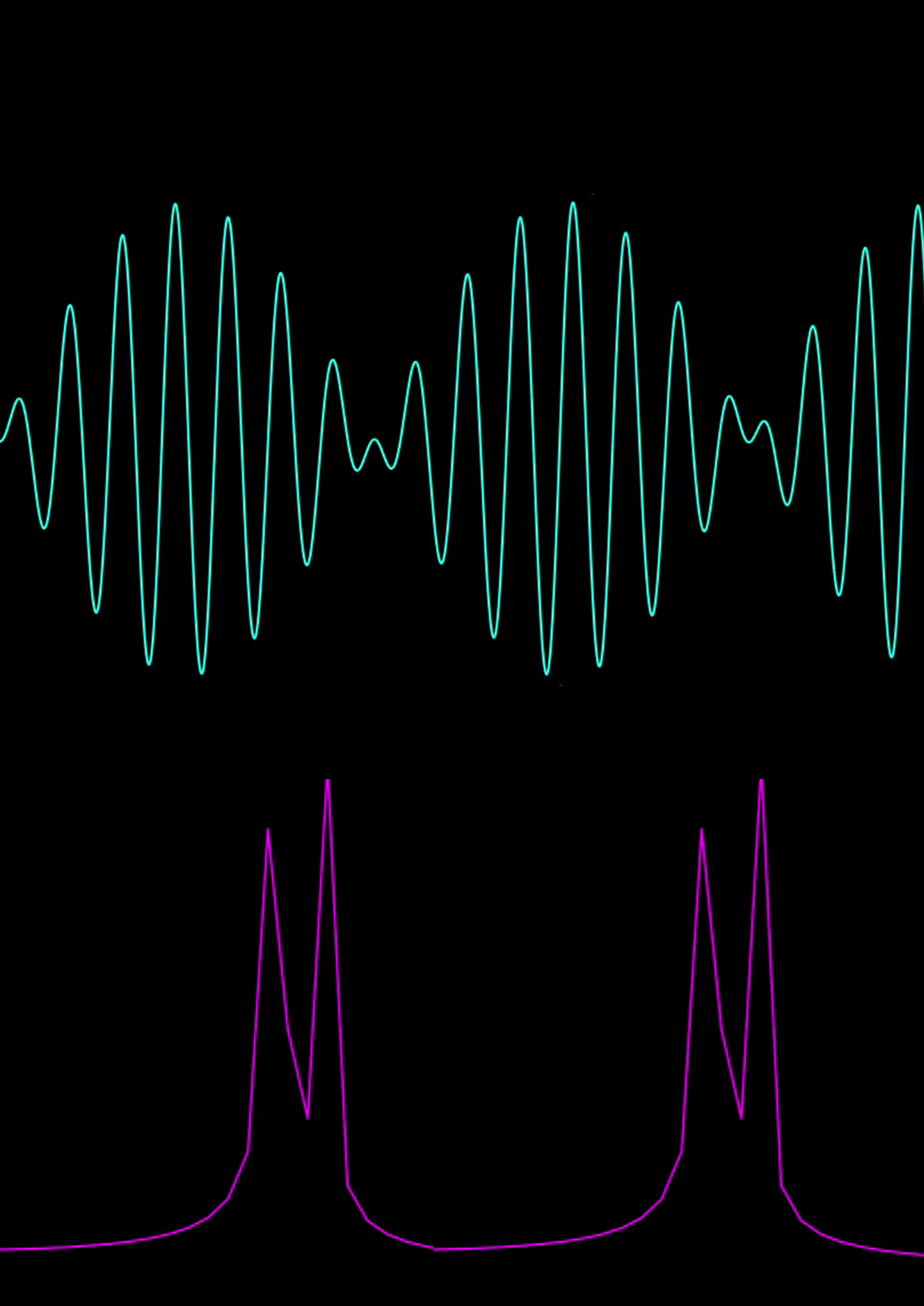 Um computador quântico gera um qubit aleatório, representado pela esfera de Bloch. As propriedades desse qubit são convertidas em um sinal de áudio por meio de um script Python, tornando-as audíveis e visíveis em uma onda sonora acompanhada de seu espectro.
