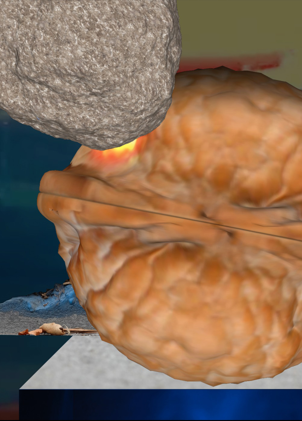 Com o pano de fundo de três bilhões de anos da teoria da Deriva Continental – Passado, presente e futuro; A energia de um dedo-central/objeto-em-forma-de-torpedo que pulsa. Num momento em que alternadamente nos sentimos poderosos e impotentes, em atos grandes e pequenos; um alerta de que a energia que lançamos no mundo pode fazer a diferença.