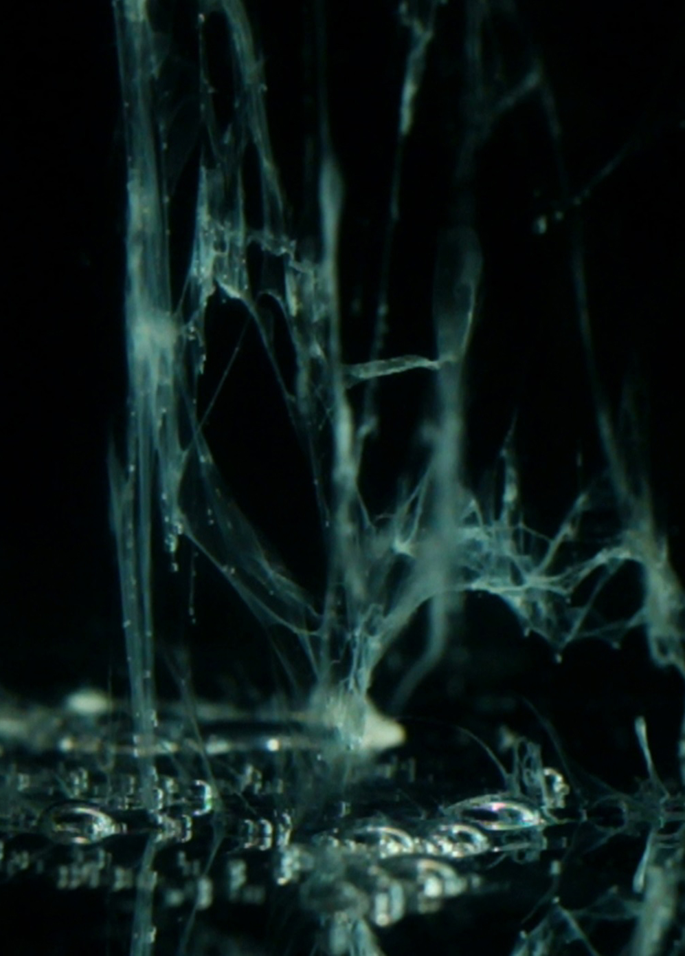 “Enaction” é uma narração audiovisual estrelando uma forma orgânica que produz seu próprio mundo através da percepção e dos movimentos de seu corpo. A forma viva é narrada por cenas de cada fase de sua evolução. O resultado é uma modulação digital de um processo “analógico” até sua origem.