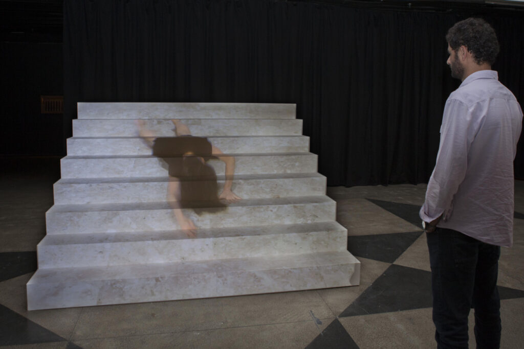 Foi concebida através de um sistema de mapping que permite que a proporção do corpo seja mantida em relação à escada, trazendo à tona movimentos inusitados a serem realizados nessa superfície.