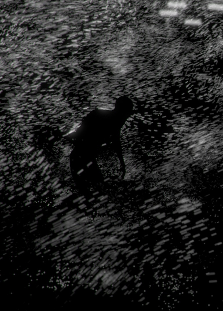O movimento nos permite distinguir um personagem oco apanhado numa tempestade de neve estilizada. Ele anda e gradualmente se exaure. O objetivo do filme é muito simples e, ao mesmo tempo, ambicioso: fazer-nos sentir uma emoção, uma empatia, com meros pontinhos brancos num fundo preto. Uma apologia ao movimento.