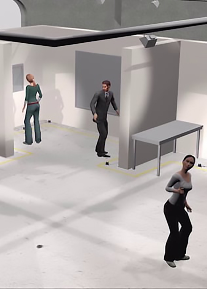Esse trabalho se apropria das típicas sinalizações de segurança e mensagens sonoras normalmente encontradas em aeroportos e estações de metrô. A animação se trata de uma breve mostra em simulação 3d da obra “Linhas de Contenção”, uma instalação sonora virtual que intervêm simbolicamente no espaço consagrado da arte.