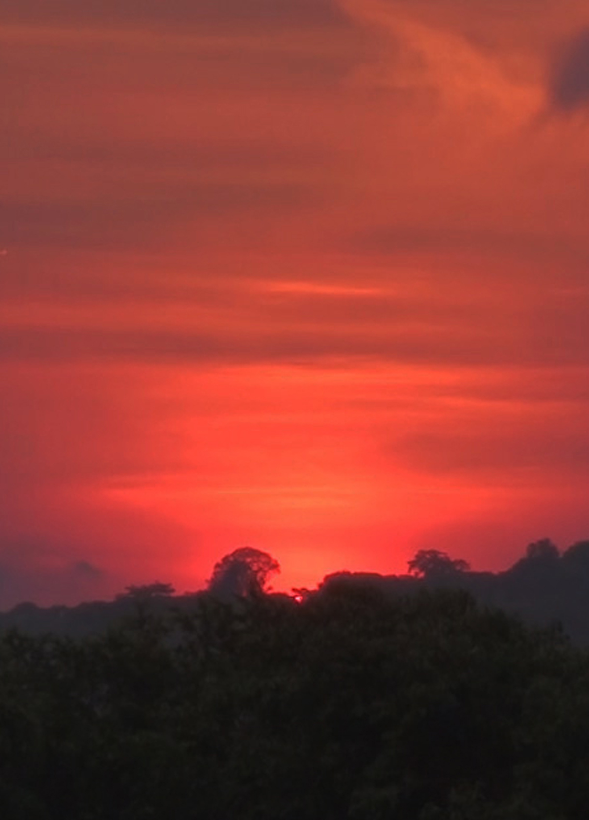 Um breve pôr do sol na floresta, vídeo capturado em plano contínuo e mixado – uma metáfora sobre as queimadas causadas pelo desmatamento da Amazônia – a maior floresta tropical do mundo. O áudio que acompanha este trabalho, foi capturado no cenário urbano e sua velocidade alterada; assim, o barulho de carros e ônibus que passa origina outra paisagem sonora, remetendo aos sons da floresta e ao seu espírito protetor: Matinta; que com um grito agudo anuncia sua presença.