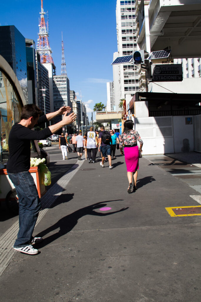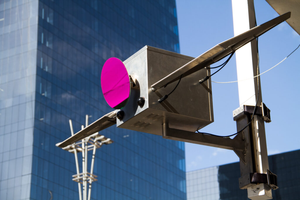 “Solar Pink Pong” é um híbrido de vídeo game e brincadeira de rua. Os jogadores podem interagir com a animação de um reflexo de luz solar rosa na rua, usando seus corpos e sombras. O dispositivo que torna esse jogo possível pode ser montado em postes ou na lateral de prédios. É uma instalação autônoma, sem necessidade de rede. “Solar Pink Pong” visa expandir as fronteiras da cultura do videogame e da tecnologia para fora da sala de estar, mudando a maneira como os humanos interagem com o ambiente externo e veem a luz do sol através das lentes da tecnologia.
