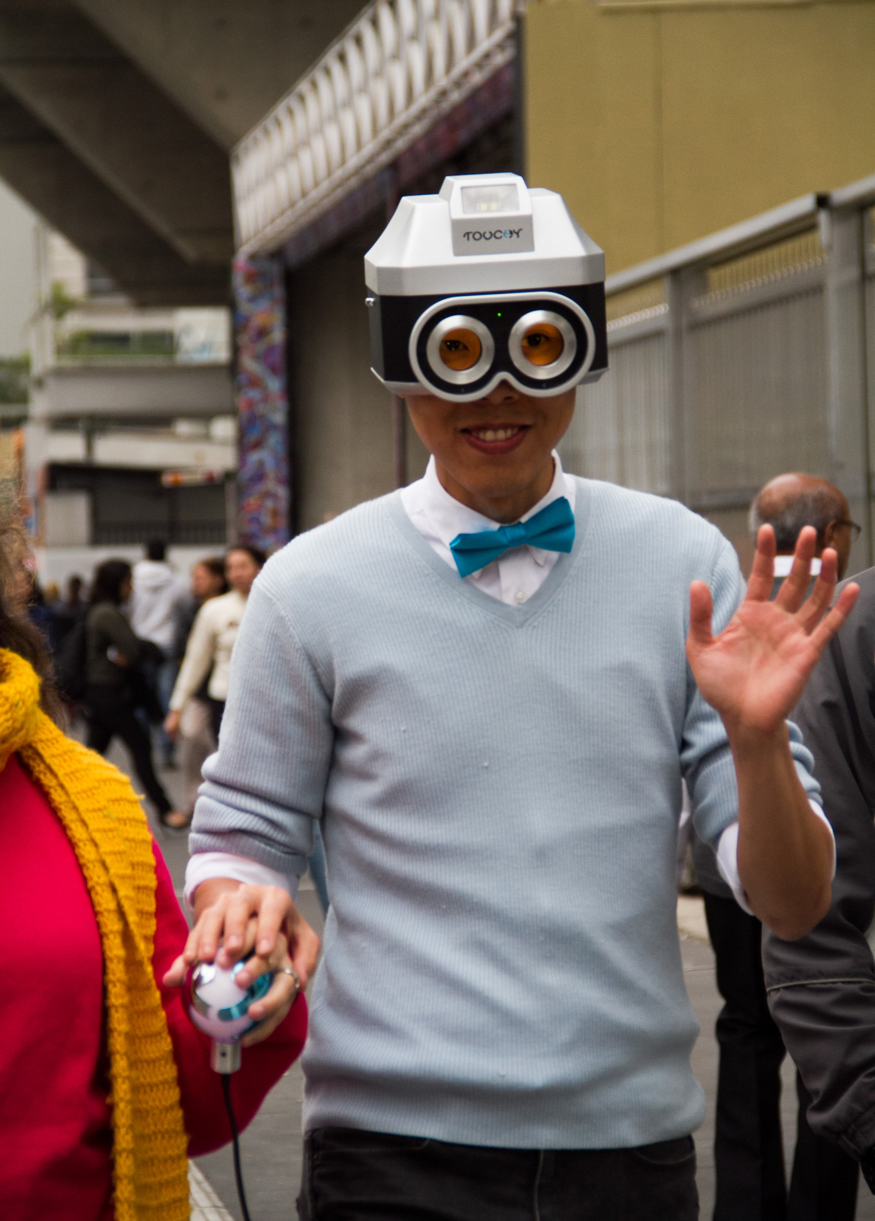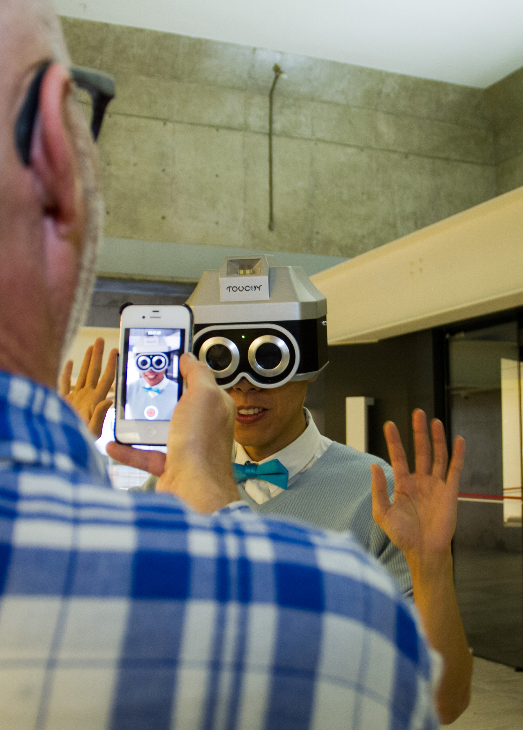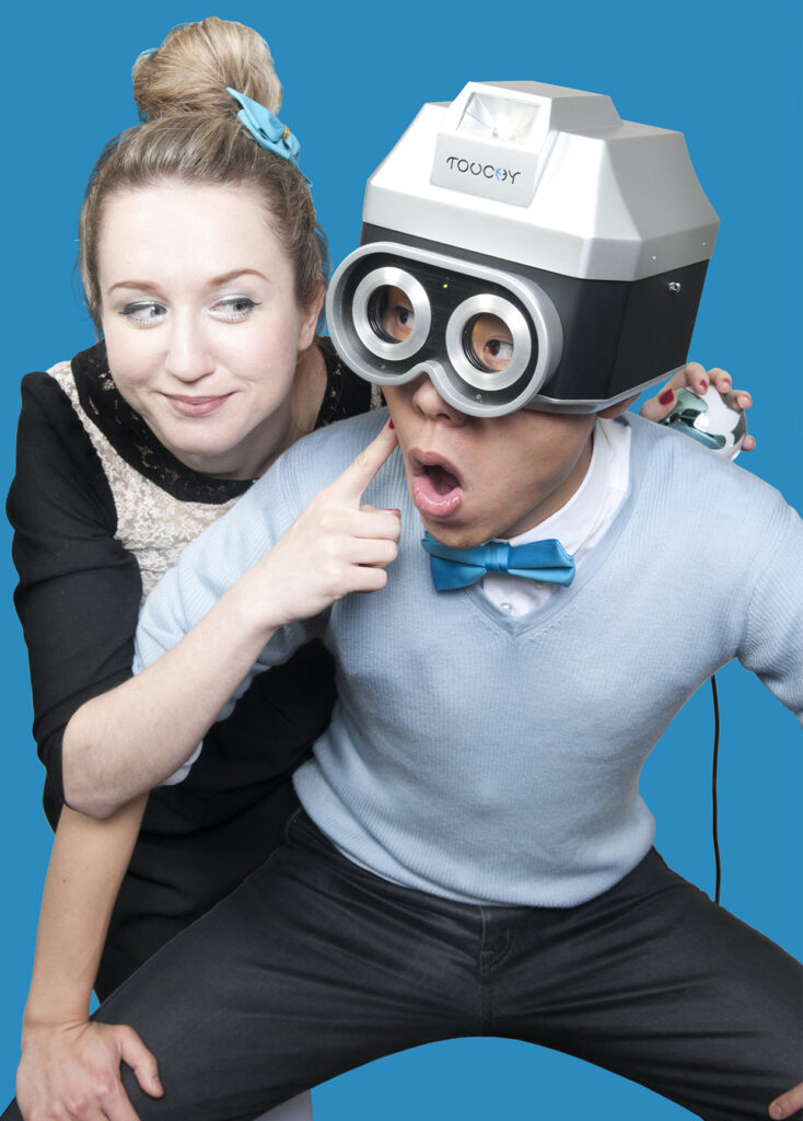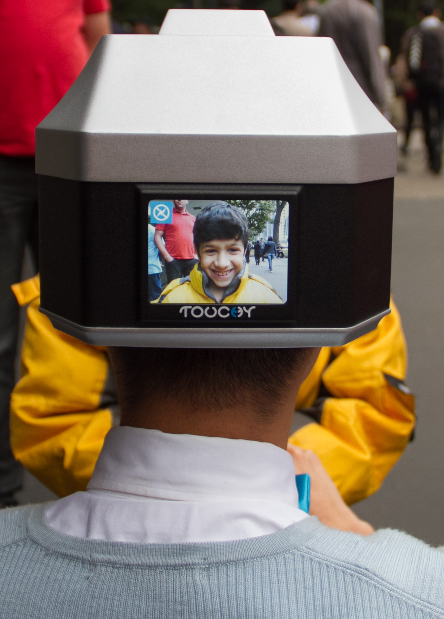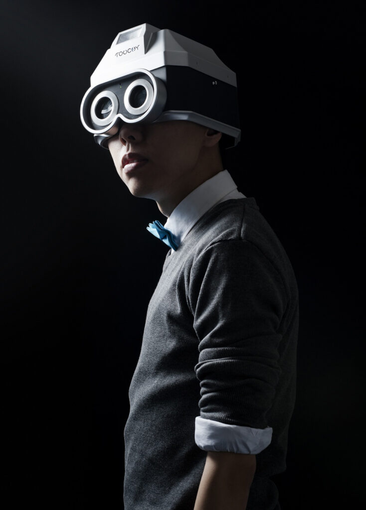 “Touchy” é uma câmera humana – um dispositivo que é vestido e que transforma um ser humano em uma câmera operante. O indivíduo que está usando o dispositivo é constantemente “cegado”, a menos que alguém toque sua pele. O toque faz com que os obturadores na frente das oculares se abram e restaurem a visão do usuário. Quando o contato físico é mantido por 10 segundos, a câmera tira um “Touch-Snap” (ou seja, uma foto é tirada pelo Touchy), que é exibida no LCD do dispositivo.