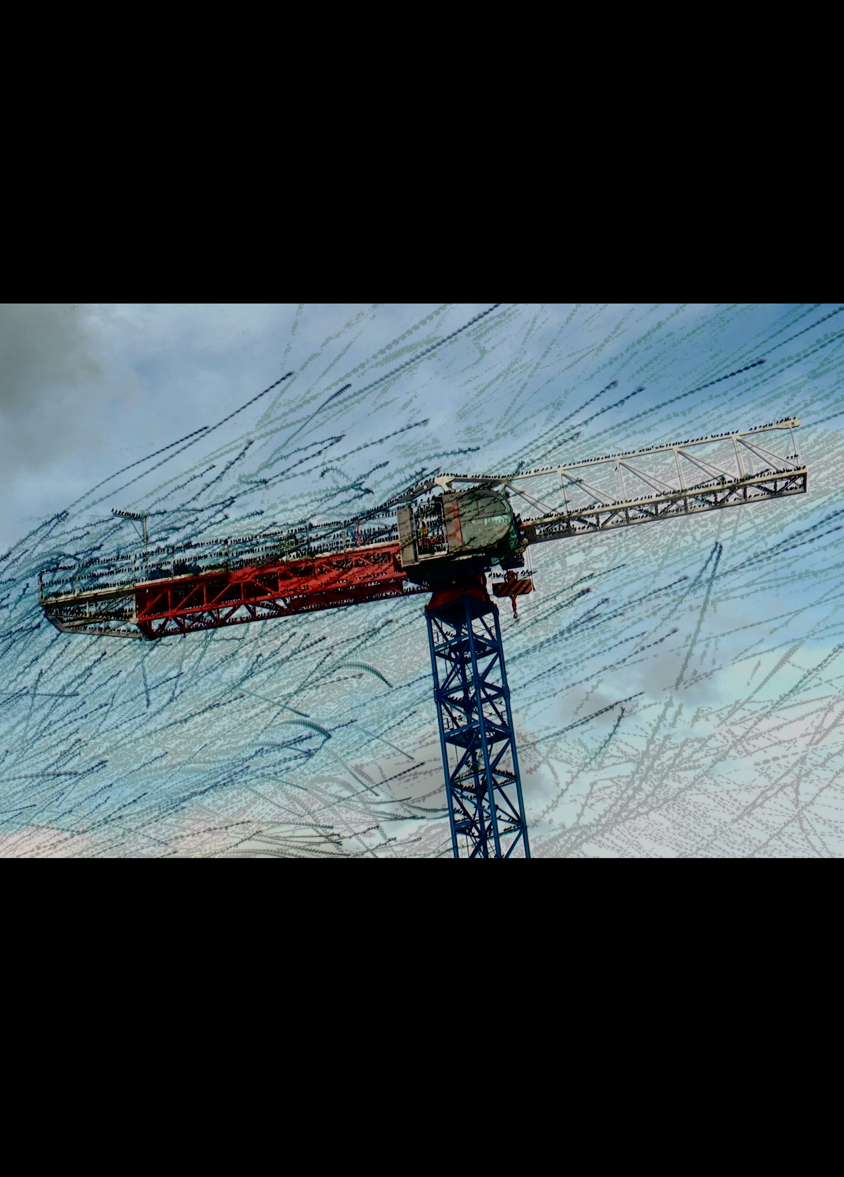 É Novembro em Marselha, os estorninhos se reúnem em volta de um guindaste antes de partir para a África. No vídeo, rastros invisíveis são reconstruídos, mostrando a padronagem do voos desses pássaros a partir de uma nova perspectiva.