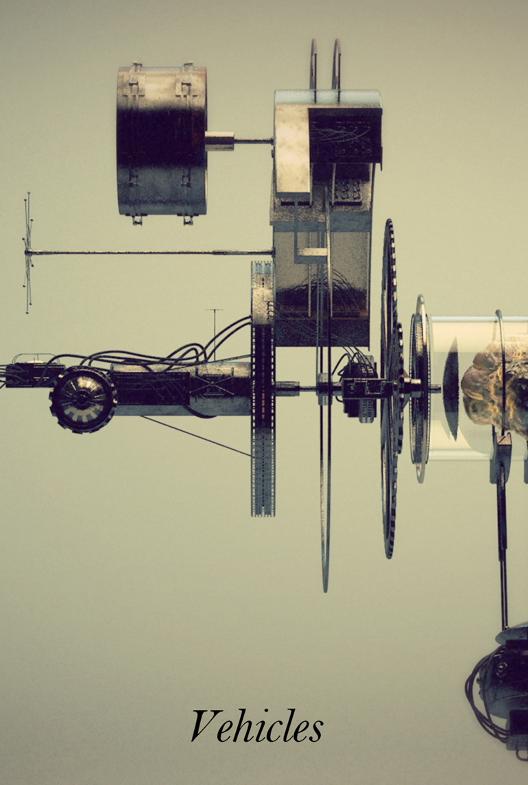 “Vehicles” é uma obra de vídeo e som na qual uma estrutura imaginária se revela desde os seus menores componentes até as entidades maiores e mais complexas que eles compõem. A música e o som que acompanham o vídeo reforçam uma narrativa que abrange desde um lugar de intimidade até uma vastidão que continua crescendo. Levemente inspirado pela dissertação “Vehicles”, do cibernético ítalo-austríaco Calentino Braitenberg.
