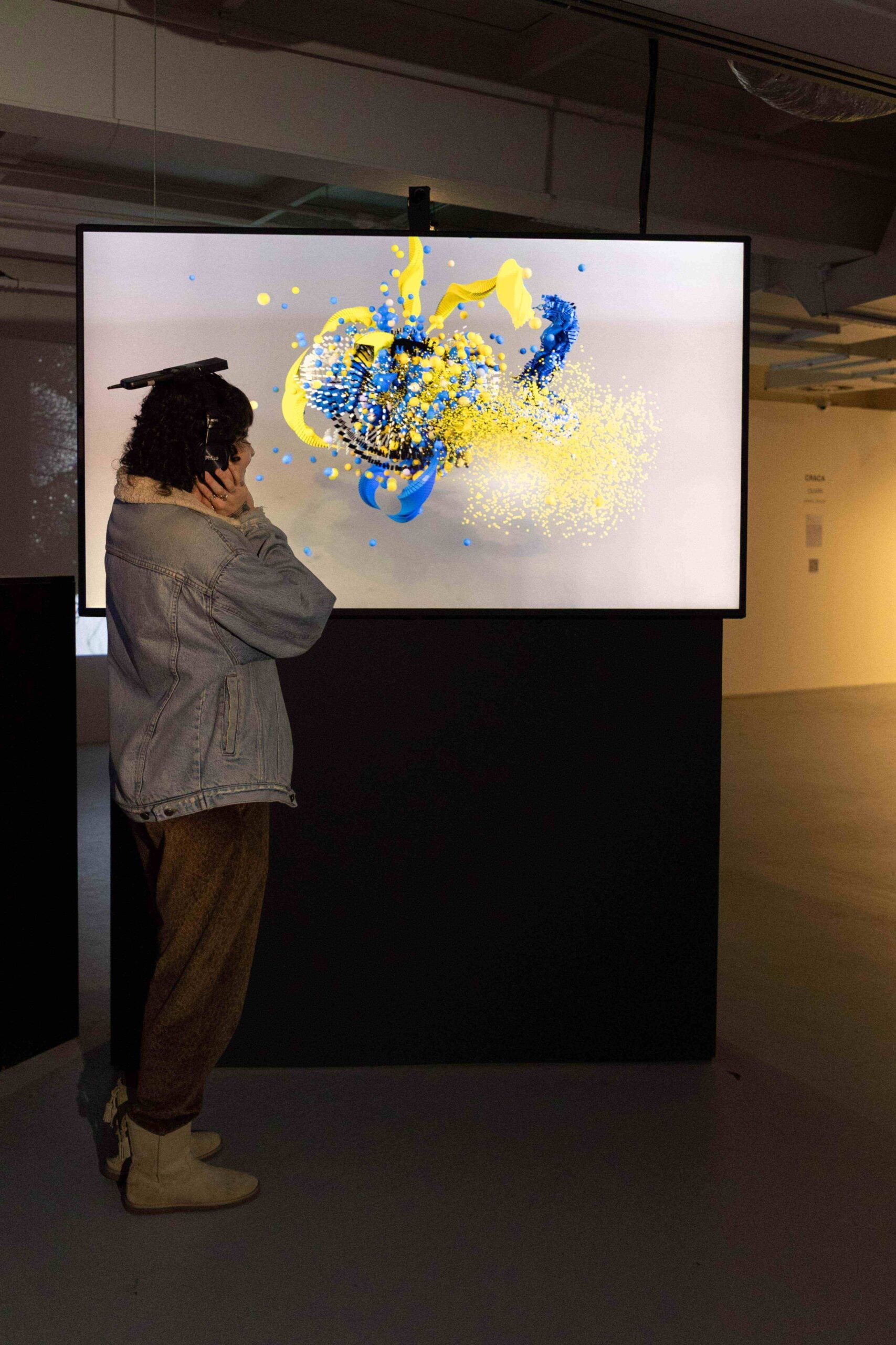 Visual Bird Sounds transforma cantos e sons de aves em visualizações 3D geradas por computador. As gravações são convertidas em figuras animadas que lembram organismos vivos digitais — como representações virtuais dos próprios pássaros. A obra convida o público a refletir sobre a beleza da natureza e a urgência de preservar seus habitats.